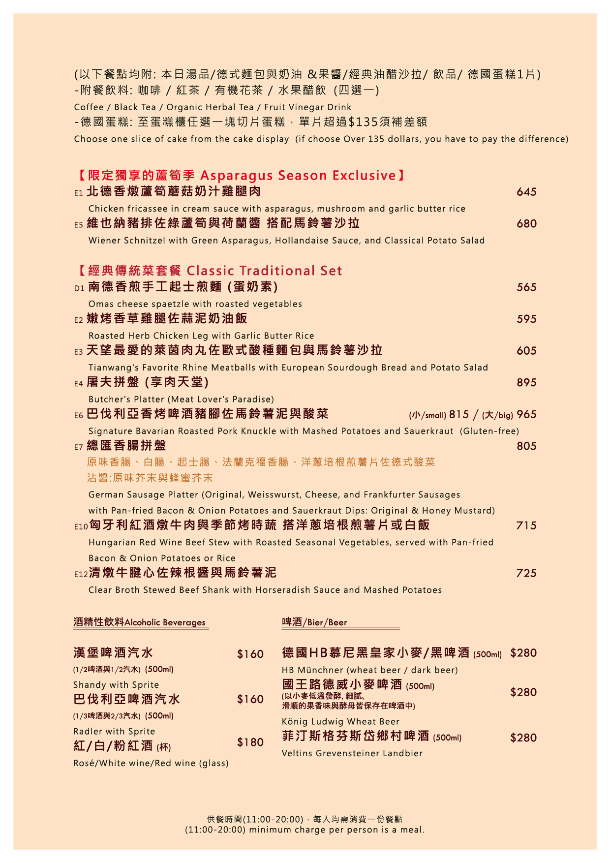若偏好精緻的個人套餐,我們特別推薦兩款經典德式蘆筍主餐: